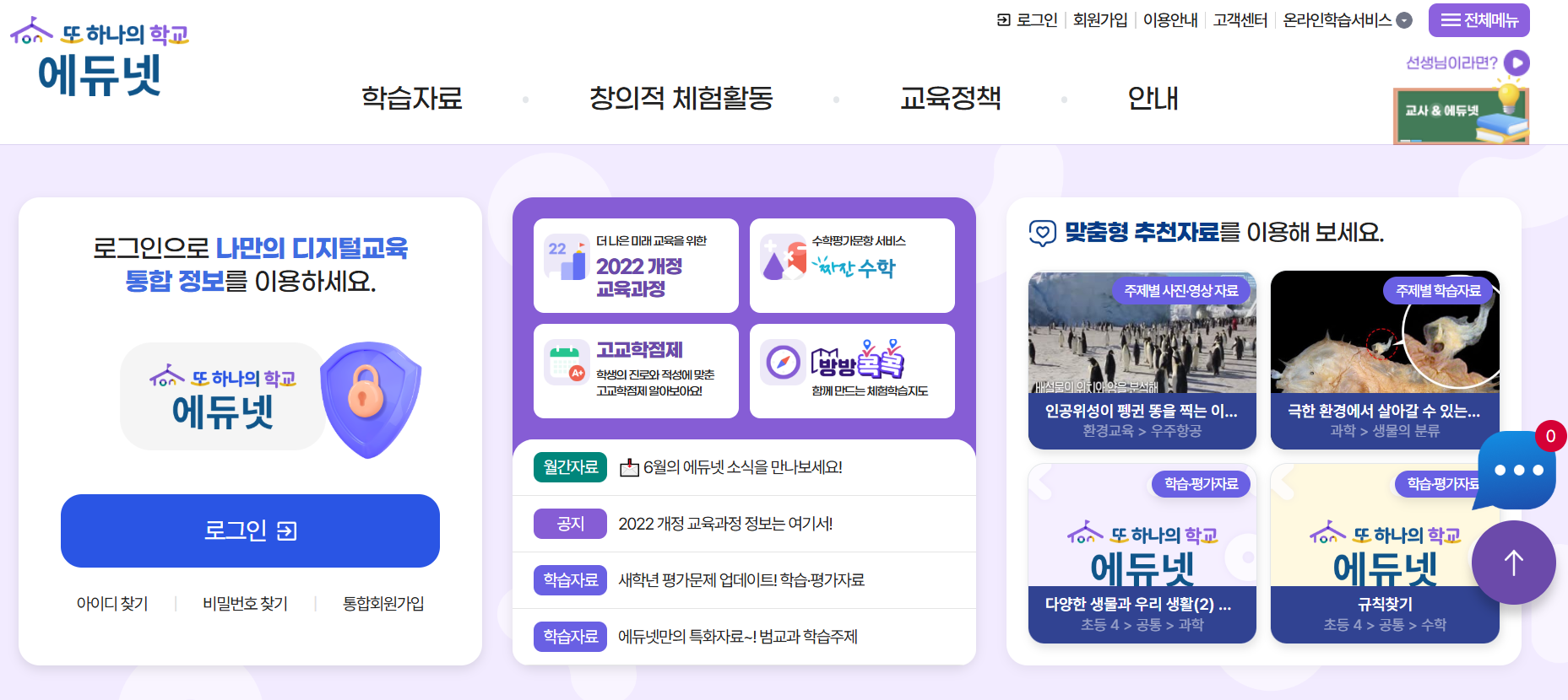 에듀넷은 교육부가 운영하는 국가 교육포털입니다. 교과서 기반 문제와 서술형 연습 자료가 많으며, 논술형·서술형 평가 대비에 매우 효과적입니다.